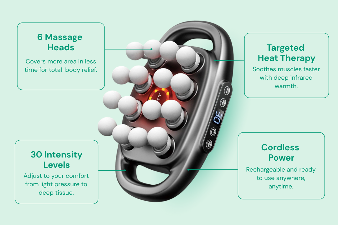 More than 10,000 people have discovered what real coverage feels like. No more 40-minute sessions trying to reach every spot. No more asking for help. ReviFlex™'s 16 heads work together like a team of therapists - melting away tension from your entire back at once. Finally, the relief you deserve without the compromise.