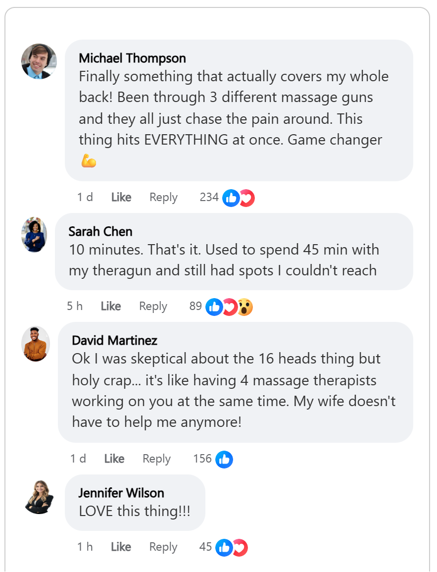 Unlike outdated single-head guns requiring painful arm fatigue and wasting precious time repositioning, the ReviFlex works through wide areas instantly! These powerful 16 synchronized percussion points reach deep tissue layers simultaneously - stimulating circulation and releasing muscle tension that spot-treatment alone simply can't match!