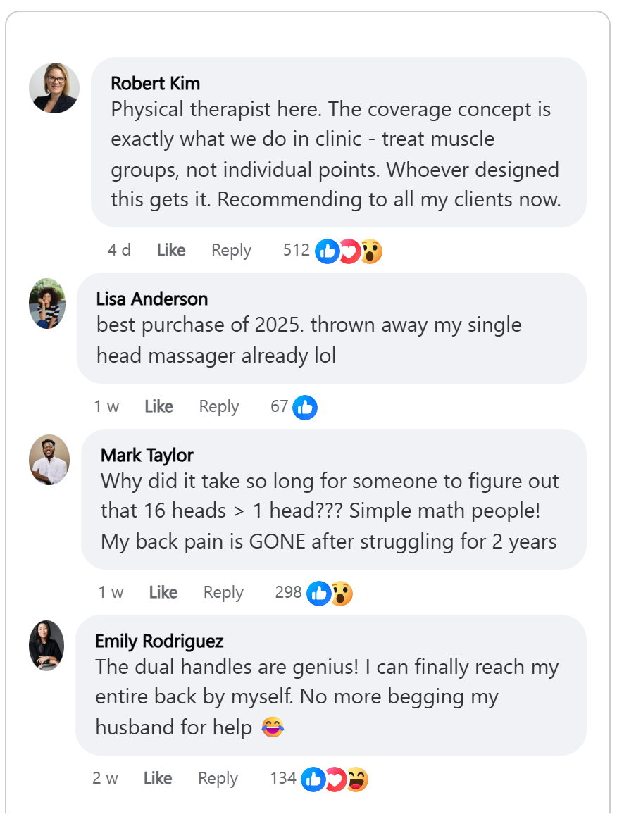 Modern life scatters pain across your entire back — from mouse-clicking shoulders to chair-compressed lower spine. It's time to stop chasing spots and start covering everything with the ReviFlex™ 16-Head Synchronized System, featuring: